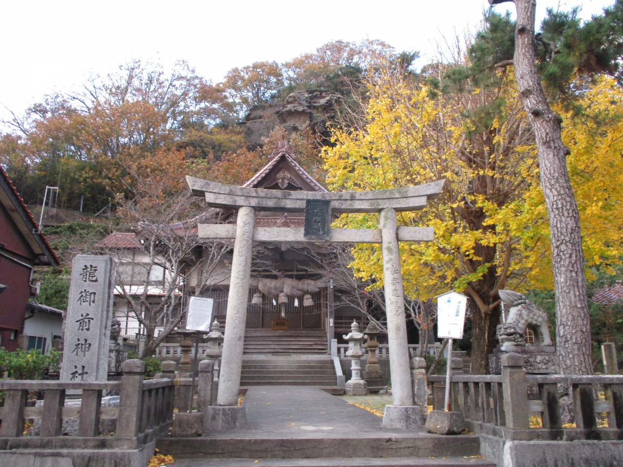 石見銀山が賑わった頃は、この近くの港から船で全国各地に銀を運んでいたのだそうです。その船の安全を守る為にもこの神社の信仰が盛んだったことが想像できます。背後の巨岩が口を開けた龍に見えることが神社の名前の由来だそうです。
