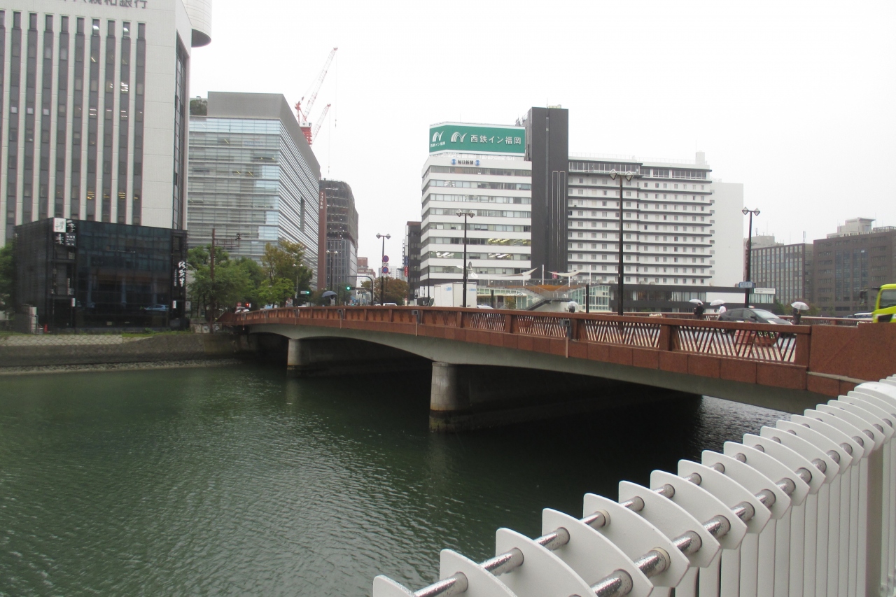 西大橋は、天神を東西に貫く明治通りが那珂川に架かる橋です。昔からの通りですから、片側2車線しかありません。この西大橋地下を走る地下鉄空港線と一体構造になっているそうですよ。どんな構造かなかなかイメージは湧きませんが、何階建てかの構造なのでしょうね。余談ですが、名前からすると近くに東大橋がありそうですが実際はありません。(南区の方にはありますが・・・)