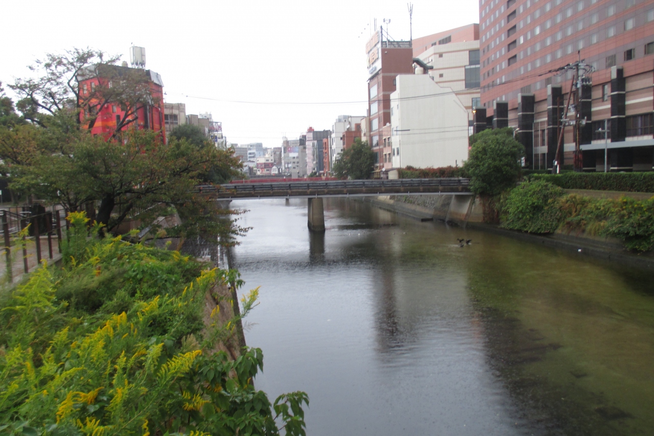 川幅から見ても、本流は那珂川、支流は博多川となります。その意味で、ちょっと目立たない博多川ですが、川岸に遊歩道を設けるなど、積極的な改良工事が行なわれています。訪れたのは10月でしたから、夜に川辺を散策するには寒すぎましたが、夏には相応に散策客が呼び込めているのではないでしょう。