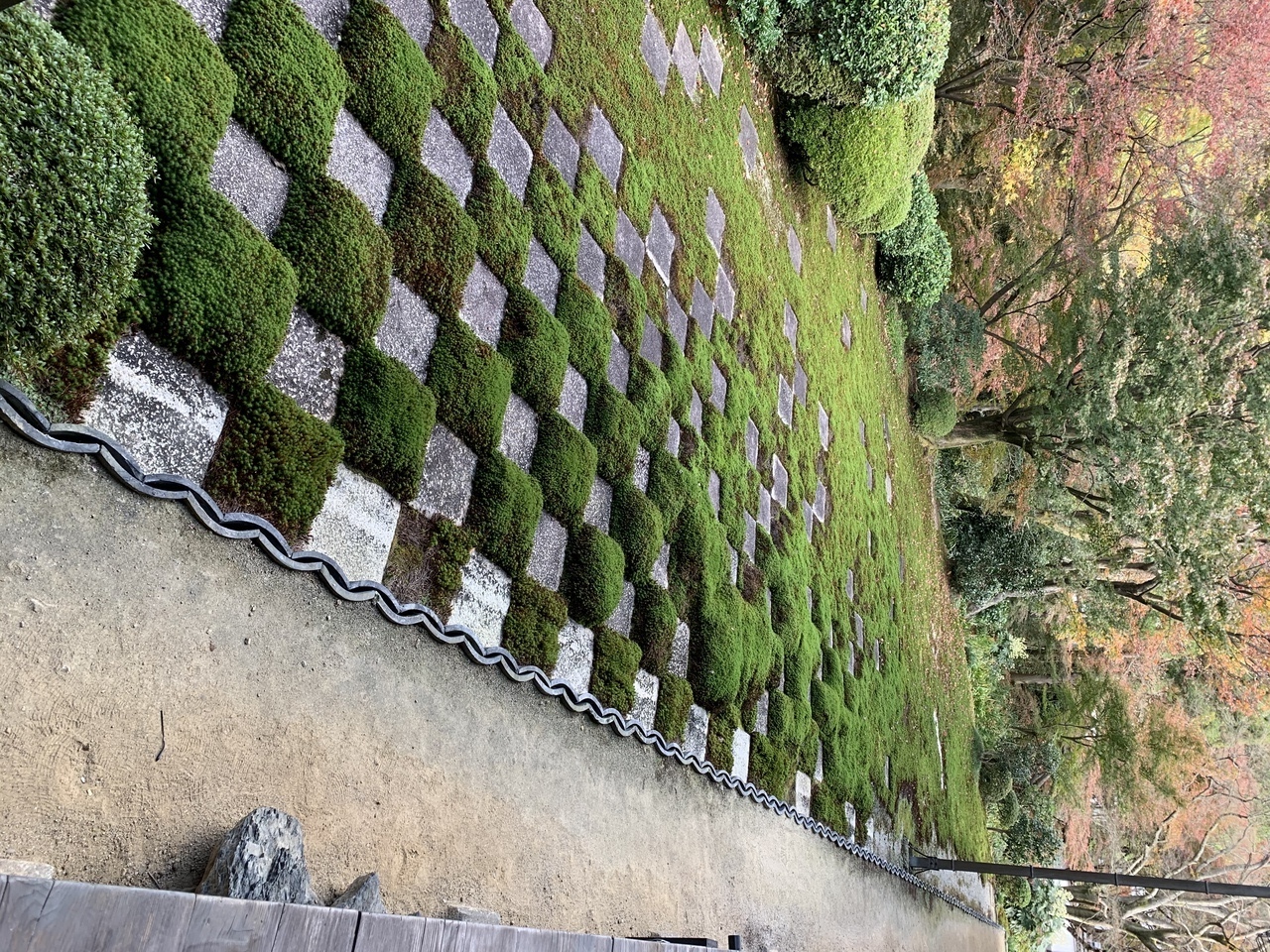 東福寺本坊にあるお庭が方丈庭園です。方丈をぐるりと囲む様に四つの趣の違うお庭があります。どれも作庭家、重森三玲が手掛けた物です。北庭の苔を配した市松模様の庭が人気らしく、皆写真を撮っていました。丁度紅葉の木々に映えて素晴らしかったです。