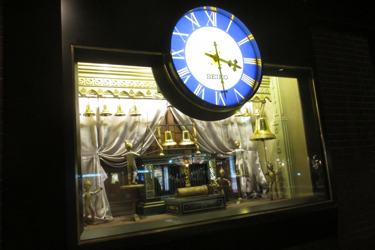 天神地下街の、インフォメーションのある広場の北東角近くに、からくり時計のヨーロピアン・ドリームがありました。誰も見向きもしない感じなので、近付いて見ることも、ましてや写真を撮るのも恥ずかしい感じです。地下街開業10周年を記念して、1986年(昭和61年)に設置されたものなのですね。