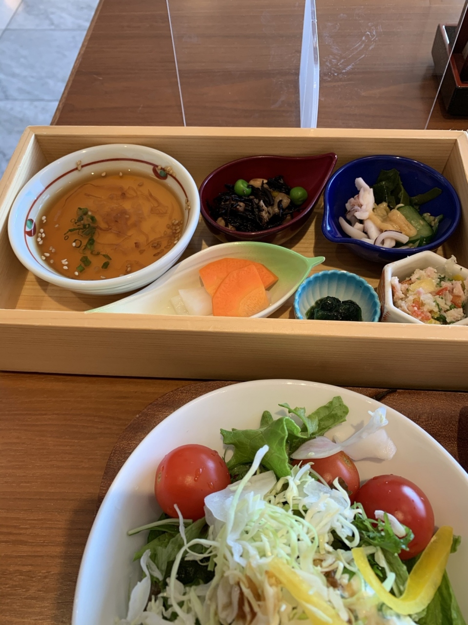 JR九州ホテルブラっサム大分の朝食。ここは2段お重の中に和風の料理が揃って入っている。コロナ禍なのでブッフェのラインナップがサラダやご飯、ちょっとした一品だけになっているが、美味しくて満足の高い朝食が食べれます。