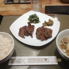 注文した牛タン定食は牛タンが6枚とライス、テールスープのセット。牛たんの味付けも塩とみそを選べ、3まいずつミックスにすることもできる。硬さも味付けもちょうどよく、旅行のシメに仙台名物を味わうことができて満足した。