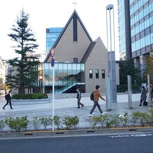 見た目もスタイリッシュな教会で、ぱっと見ただけでは教会ときづかないくらい、周辺のビル群と景観がマッチしています。