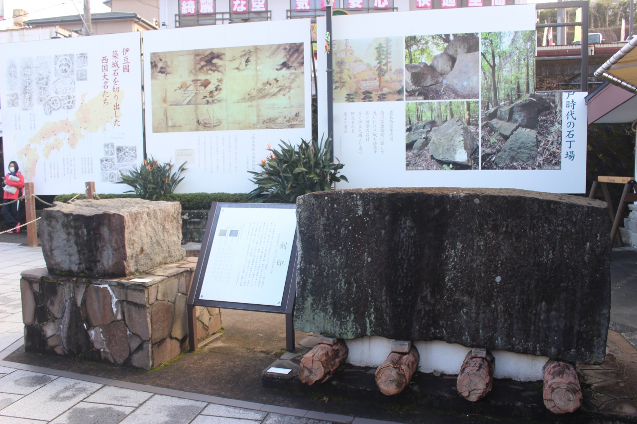 江戸城の石垣がこの一帯でとれた巨石で、大名たちが船で江戸まで運んだそうです。