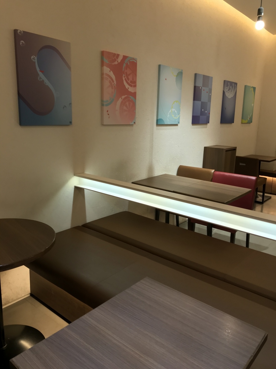 クリスマスの飾り付けが始まったディアモールにあるオープンスペースのカフェなので、コロナ対策はバッチリです。パフェに入ってる抹茶の生チョコが最高です。月始めということで、ナンテンの絵柄の可愛いポストカードをもらいました。