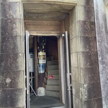 レトロな入り口を入るとすぐ資料館があり螺旋階段を上がっていくと最後に梯子のような急な階段がかけられていて上まで登ると外に出ることができます。