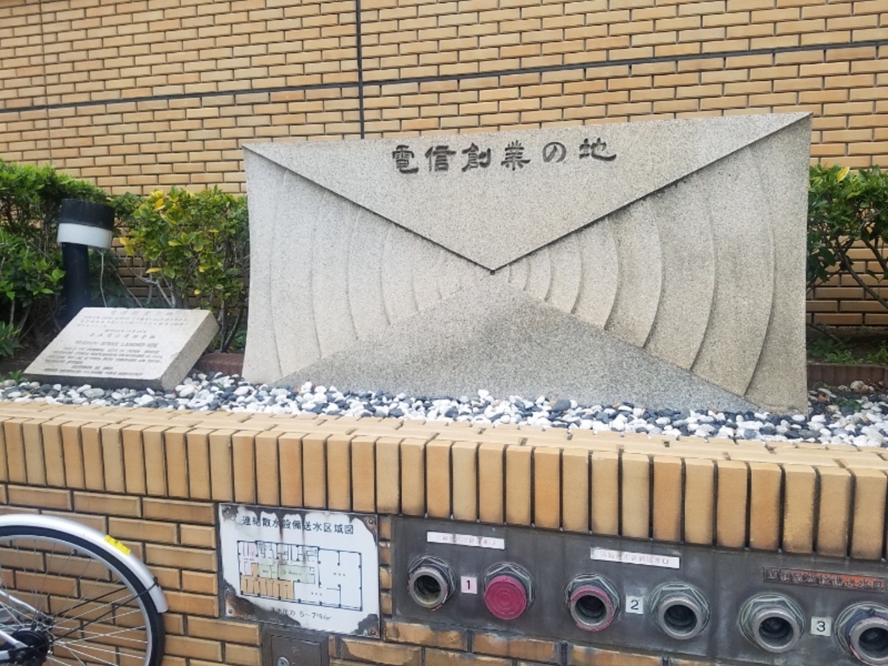 横浜地方裁判所の前にあります。1869年にここにあった横浜電信局と東京の電信局の間で初めて電報が取り扱われたとのことです。電信発祥の地は松代にあるようなのでこちらは公衆向けの業務として開始された初、ということでしょうか。いづれにしろさすが横浜、発祥の宝庫ですね。