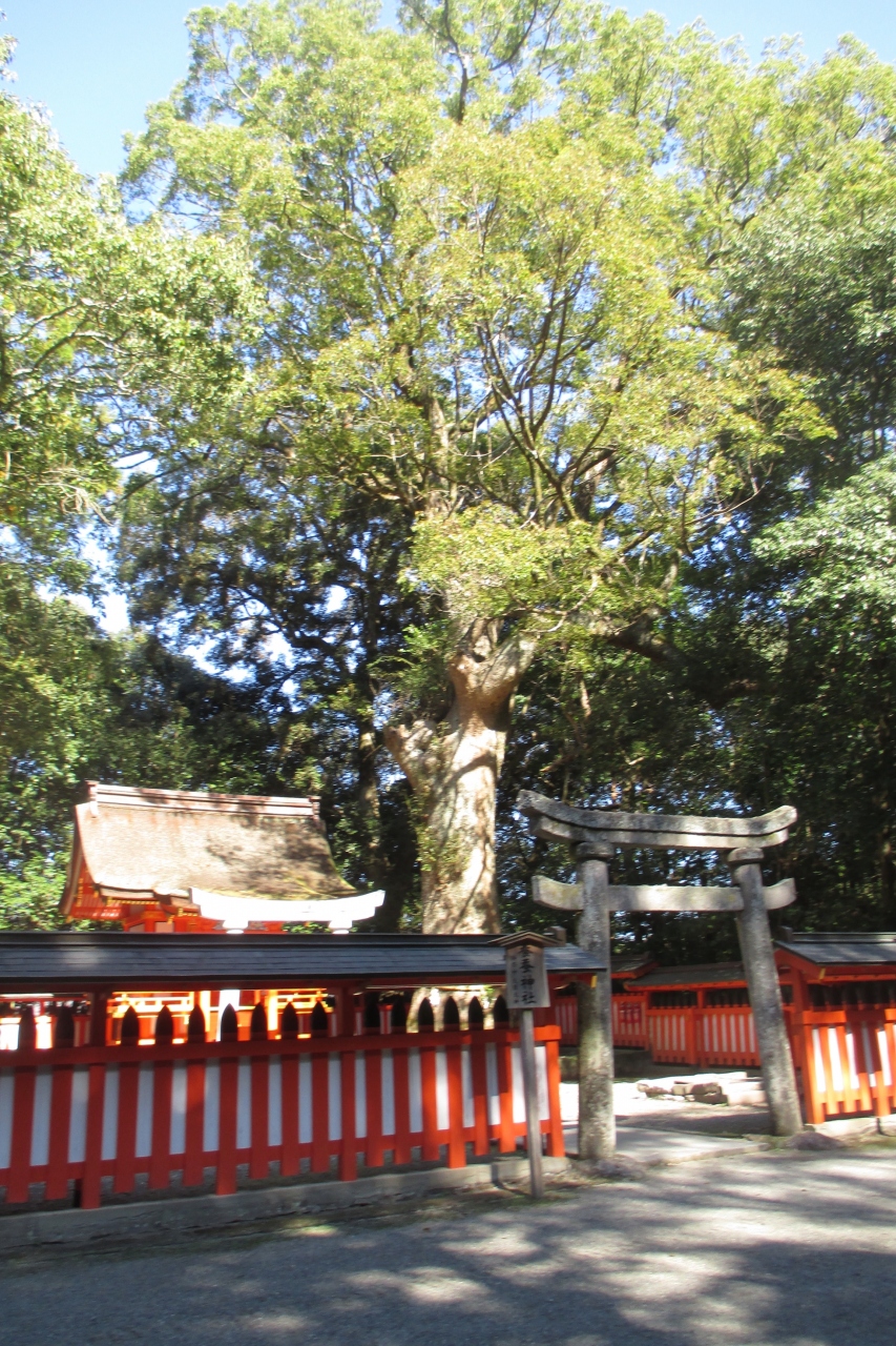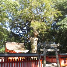 ここは御祭神が2柱という神社ではなく、八坂神社の御祭神・須佐之男命と養蚕神社の御祭神・天照皇大神が、1つのお社を共用されています。大変、珍しいと思います。こういう形の神社は初めてお参りする様な気がします。どちらの御祭神も、現代風に表現すれば、超ビッグな神様ですから、なおさら珍しいと思います。なお、こちらのご神木も大きく、小さなお社を押し潰しそうです。