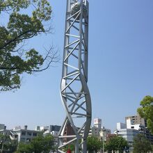 平和の時計塔は昭和42年10月28日に建立されたもので、毎朝8時15分(原爆が投下された同時刻)にチャイムが鳴らされ、「ノーモアヒロシマ」の強い願いが込められています。チャイムの音は平成8年に「残したい日本の音百選」に選ばれています。