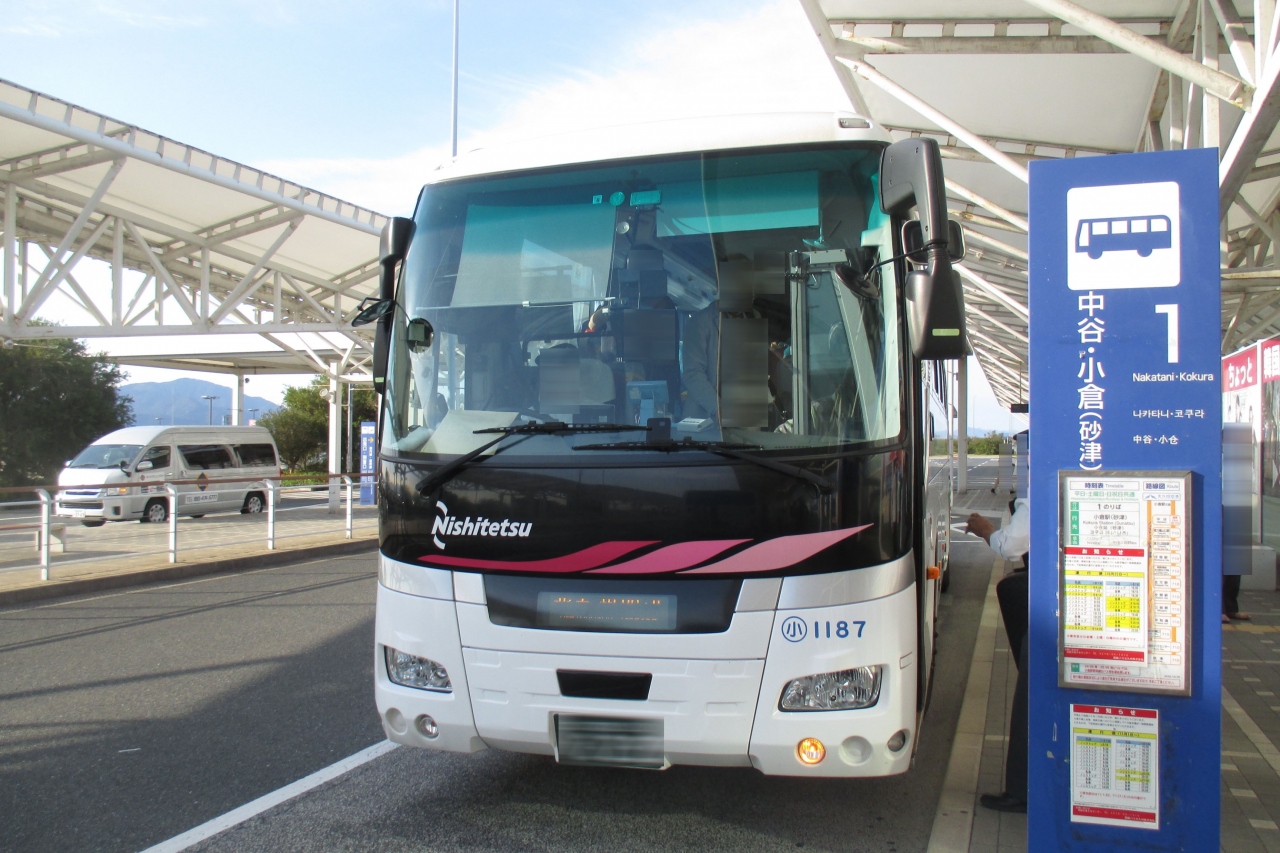 コロナウィルスの影響で、北九州空港の航空便は大幅に減便になっていましたが、それに合わせて、北九州空港へ行くエアポートバスも大幅に減便中でした。小倉から利用しましたが、空港までノンストップで40分、各停で1時間弱でした。各停の後にノンストップがあり、どっちが先に着く?と悩みましたが、各停の方がほんの少し前に到着すると案内されました。