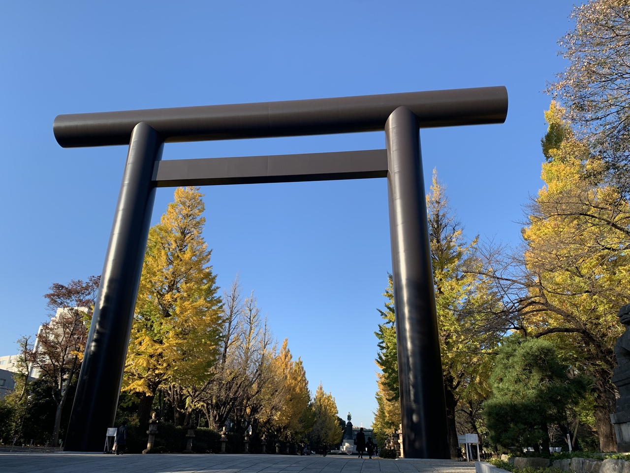 靖国神社に入る際に必ず目の当たりにする大きな鳥居です。