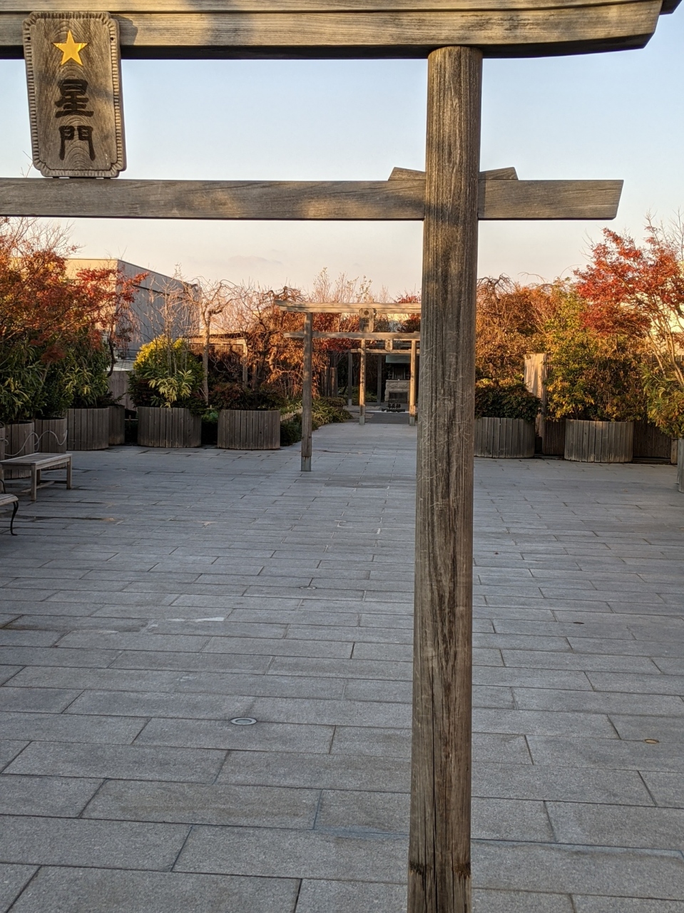 博多駅の屋上つばめの杜ひろばにある鉄道神社です。はじめはなぜこんなところに鳥居があるのかと思っていたら神社がありました。
