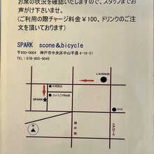 ラブニューでケーキを購入した際に近くの系列店(?)で持ち込み料とドリンク注文をすれば持ち込んで食べることが出来ることを聞いて訪問しました。店自体はスコーンを売りにしている店でしたが、残念ながら昼前の時点で既に売り切れでした。店内はカフェと併設してマウンテンバイクの店にもなっており、自転車好きには眺めているだけでも楽しいカフェでした。