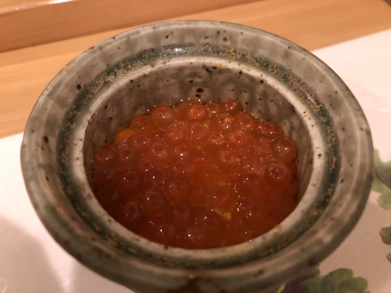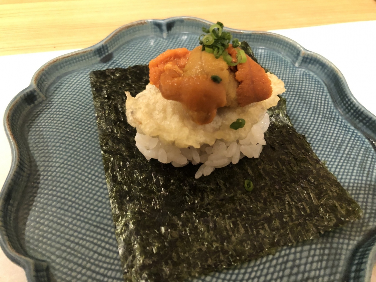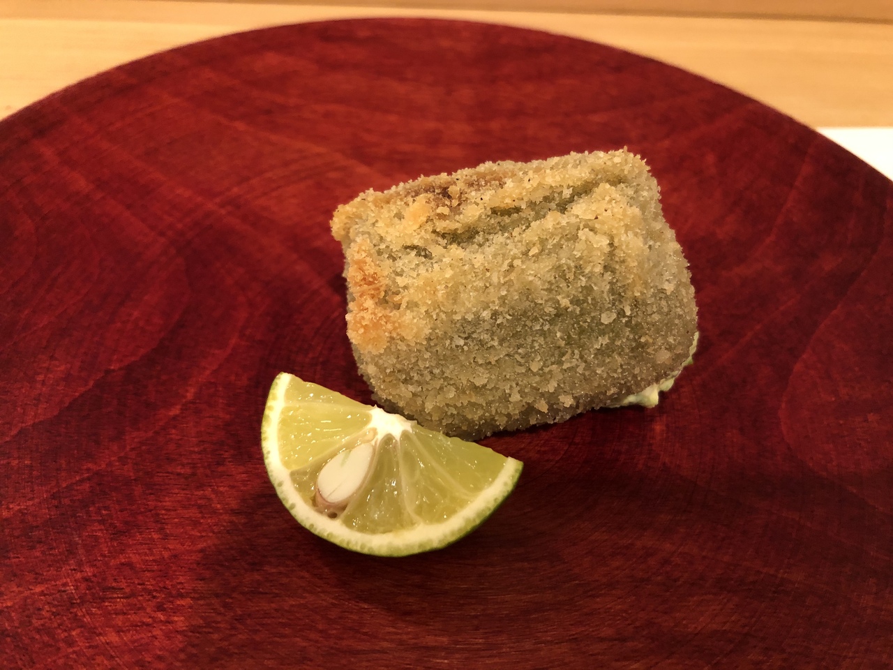 小田急•地下鉄千代田線代々木上原駅から徒歩すぐ、坂の上の閑静な住宅地にある割烹。11席のカウンター席で食べる料理は基本的にはおまかせコースですが、アラカルトもOKのようです。地元石川県やプリンスホテルなど都内のホテルで修行をされた店主の岩崎憲治さんが作り出す料理は、丁寧な和食ながらもカジュアルな新しい発想に満ちたもの。それぞれが季節の素材を生かしたものですが、中でも定番となっている「牛肉と野菜の白和最中」は、赤身の牛肉と上質な甘さのある白和えを、最中で包むもの。それぞれが主張し過ぎず、新たなハーモニーを作り出しています。また、香箱蟹が入ったとのことで、コースに加えていただく。「赤い宝石箱」と呼ばれる蟹は、小ぶりながらも濃厚で、卵も味噌も楽しめました。割烹の中ではリーズナブルではあるものの、なかなかの贅沢なお店。お店の方の対応も素晴らしく、また、行きたくなるお店です。
