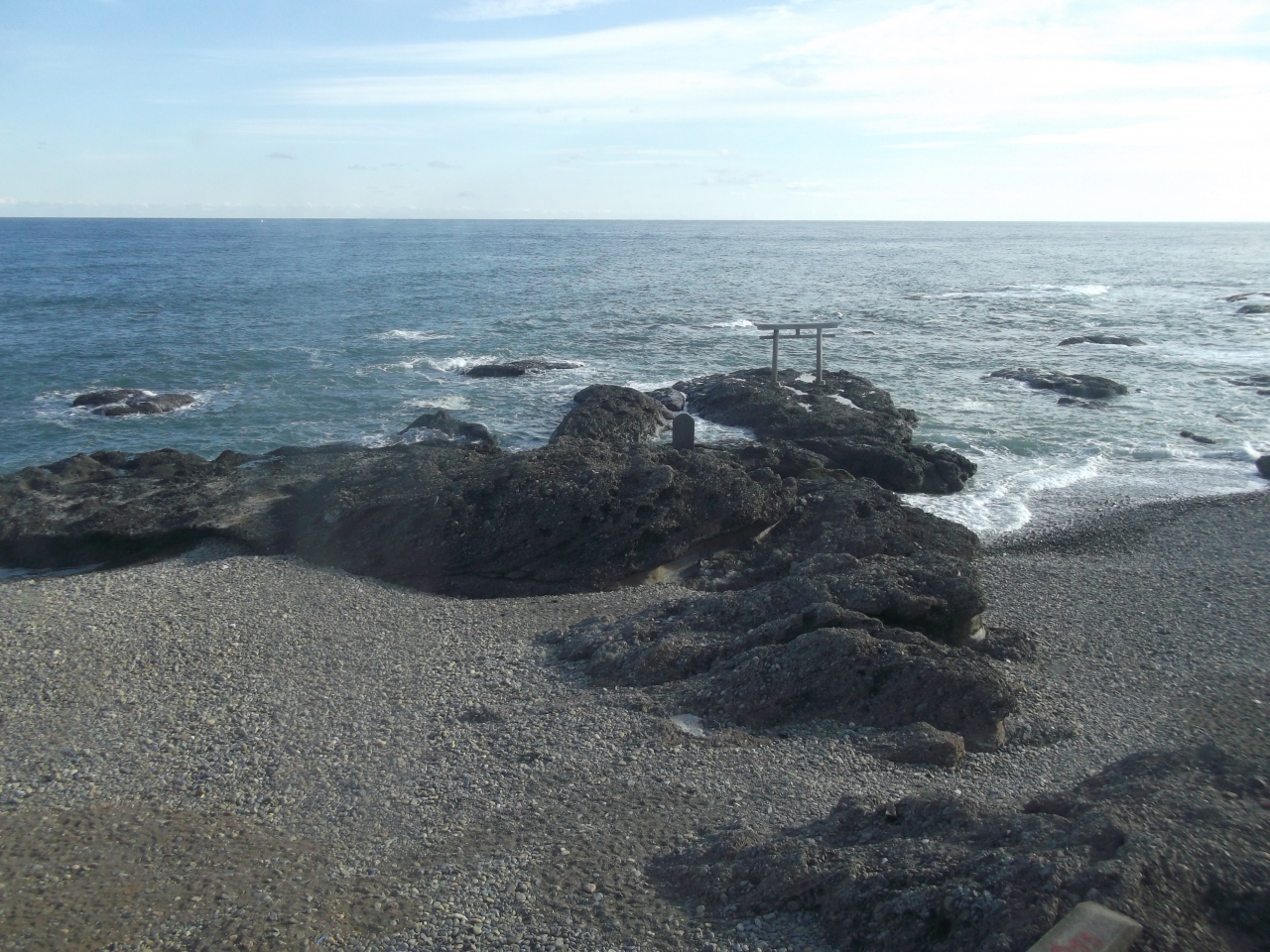 大洗海岸と言うと海水浴のイメージがありますが、大洗公園のあたりまで来るとごつごつとした岩が目立つ岩場もあります。太平洋の荒波が時折押し寄せ、波しぶきが巻き上がるような景観を眺める事ができます。打ち寄せる波を感じながら、浜辺の散策を楽しみました。