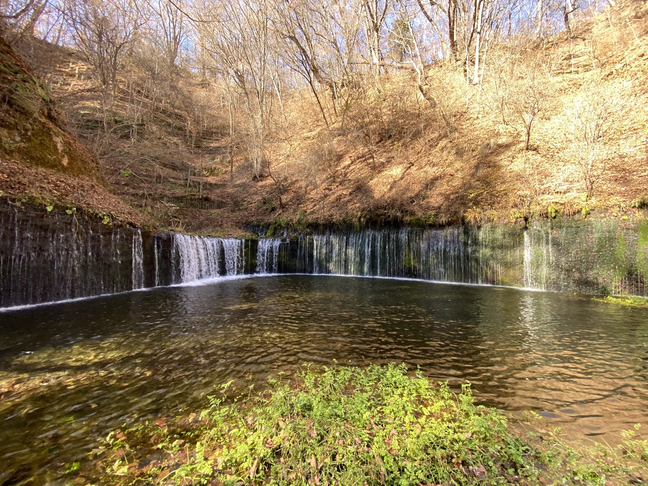 高さ約3メートルほど、横に長い珍しい滝。白いベールのような綺麗で女性的な雰囲気です。