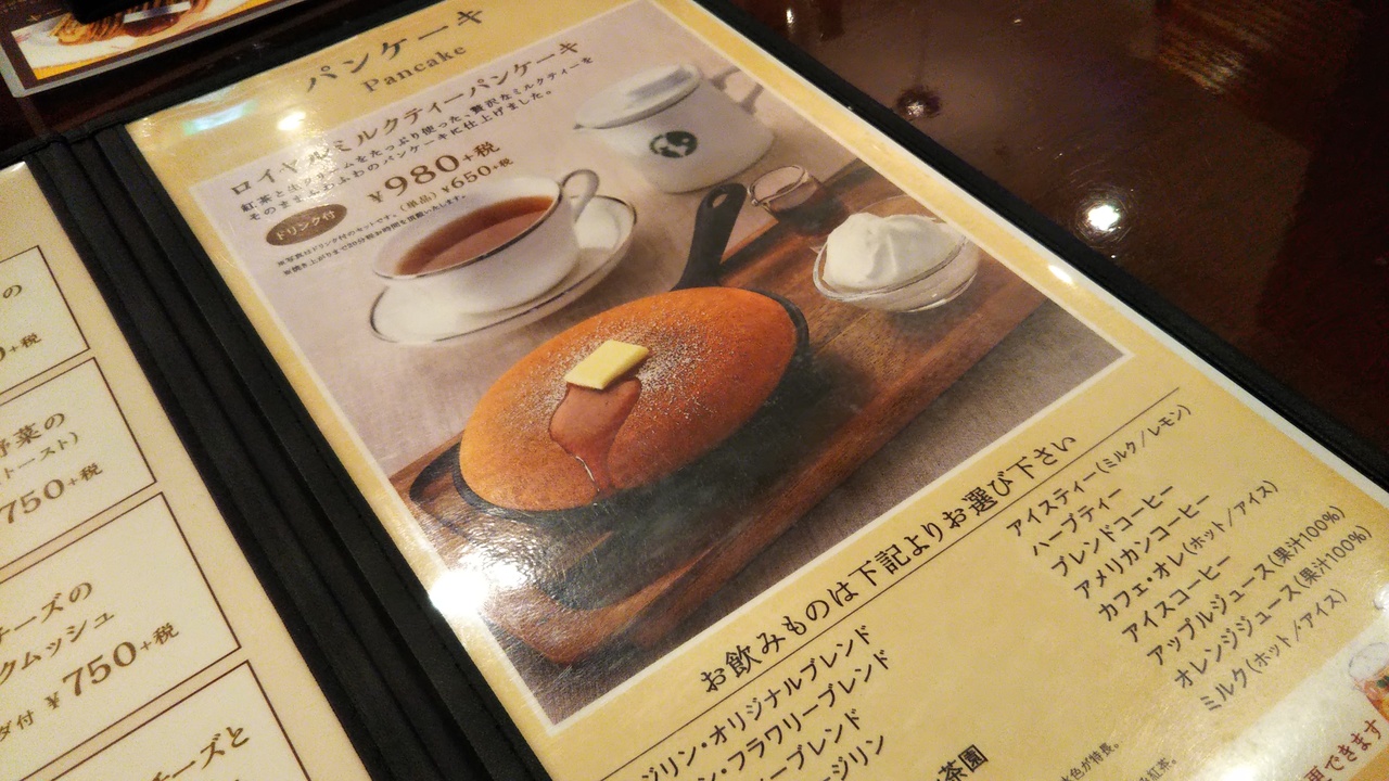メニューの写真よりはやや小さめだが、おいしいロイヤルミルクティーパンケーキである。紅茶系パンケーキは珍しいので、オススメである☆エルミロードの入口に店があるので場所もわかりやすく、落ち着いた雰囲気の店内である。