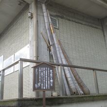 宝物殿の軒下に「大幟(おおや)」の竹が置かれています。
