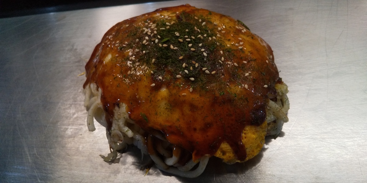お好み焼きは、基本の種類を決め、そばかうどんをチョイス。後は好みでトッピング。評判どおりで、甘味あるソース、目玉焼き美味しかったです。