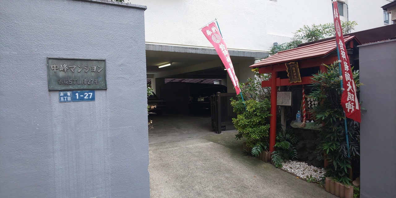マンションの敷地内にあり、とても小さく通り沿いからは奥まったところなので目立たないですが、このマンションの方々をはじめ、街の方に大切にされているのを感じられるあたたかみのある稲荷神社でした。
