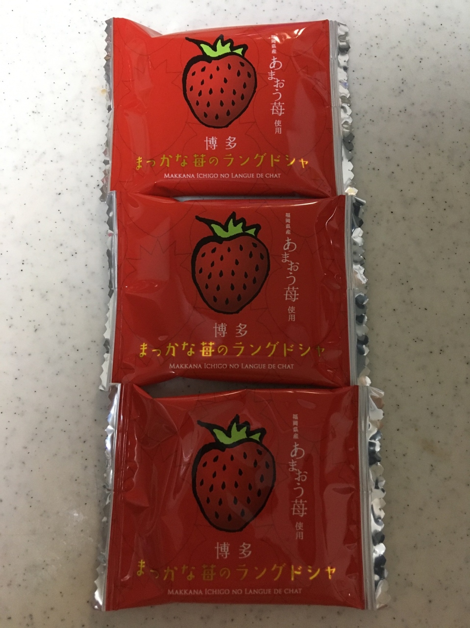 福岡のお土産、花福堂さんの『博多まっかないちごあのラングドシャ』をいただきました。