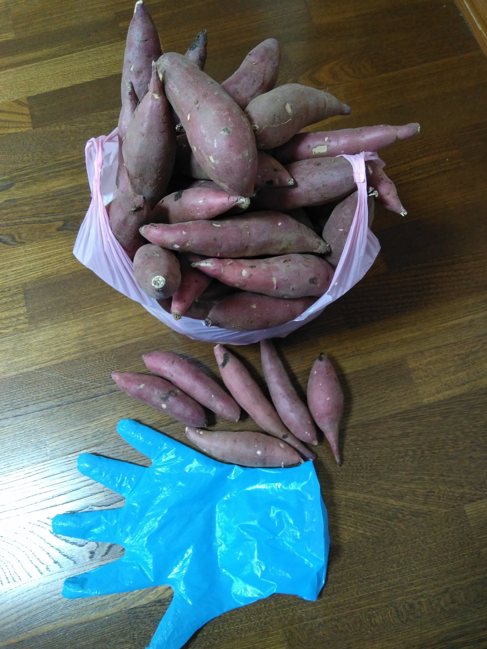 期間限定かと思いますが平日の午前中、さつま芋の詰め放題が行われています。店内で料金¥100を払い、使い捨て手袋と袋を貰い店舗外に出ます。並ぶコンテナからさつま芋を選んで,詰めたらそのままお帰りです。形は細目で不揃いですが、天日干しされているのか甘さ抜群です。本日3回目、家に帰り計量したら4.1㎏ありました。丸干しを作るのにも丁度良いサイズとのことです。