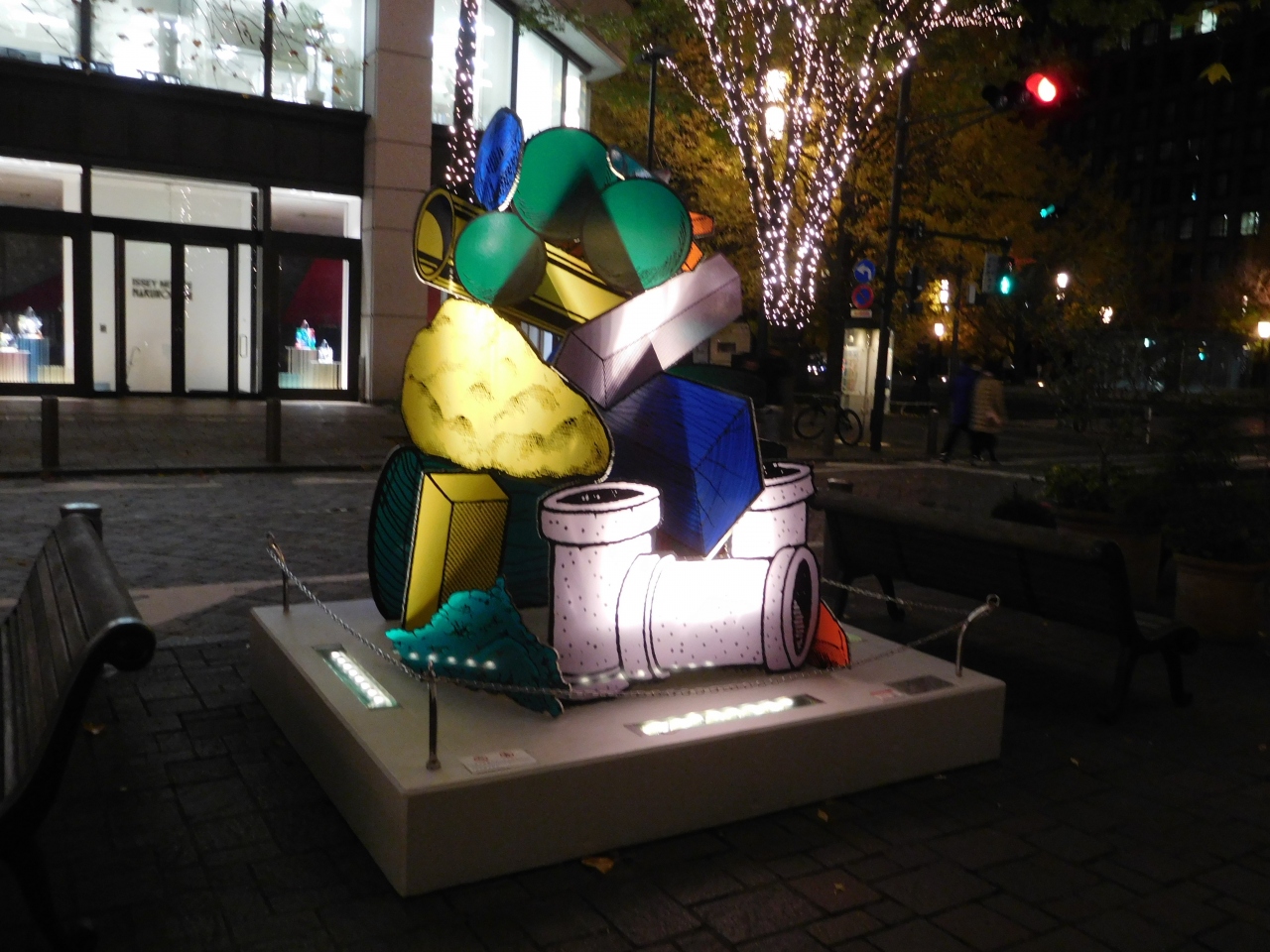 東京駅近くの「丸の内仲通り」を中心に、いろいろなアート作品が展示されています。数年振りにイルミネーションを見に訪れると、以前とは違ったアート作品があり、新鮮な感じがしました。イルミネーションの時期だったので、作品にもライトアップされるような感じになっていて、イルミネーションと共に楽しめました。昼と夜とでもまた違った印象になりそうだと思いました。