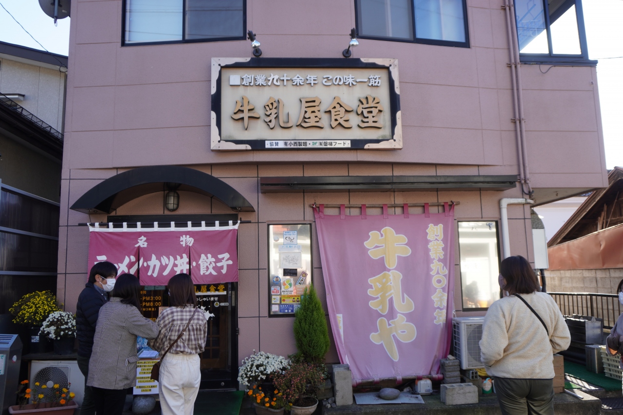牛乳屋食堂は、会津若松から大内宿に向けて行く道の中間あたり。知る人ぞ知るのすごい人気のお店です。とても入れないだろうと思って寄ってみましたが、確かに、たくさんの人が行列待ち。本当にすごいです。