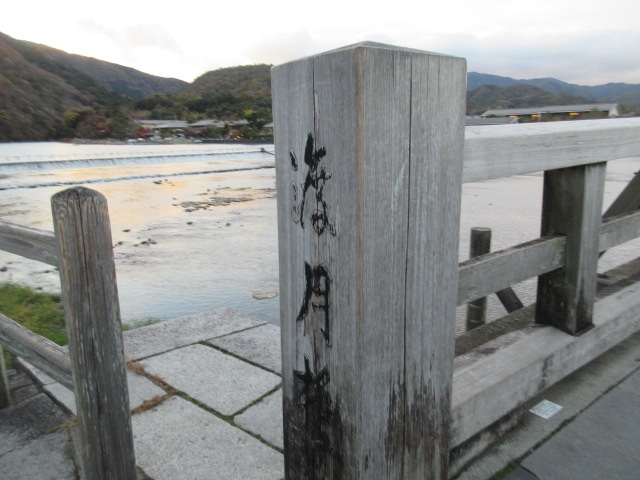 嵐山にある有名な橋です。紅葉時期でとても混雑していて、橋の上にはたくさんの案内の警備員さんがいて、スピーカーで「立ち止まらないで下さーい」とおっしゃっていたので、たちどまることができずちょっとせわしなかったです。早朝とかならゆっくり立ち止まって風景も楽しめるかも。