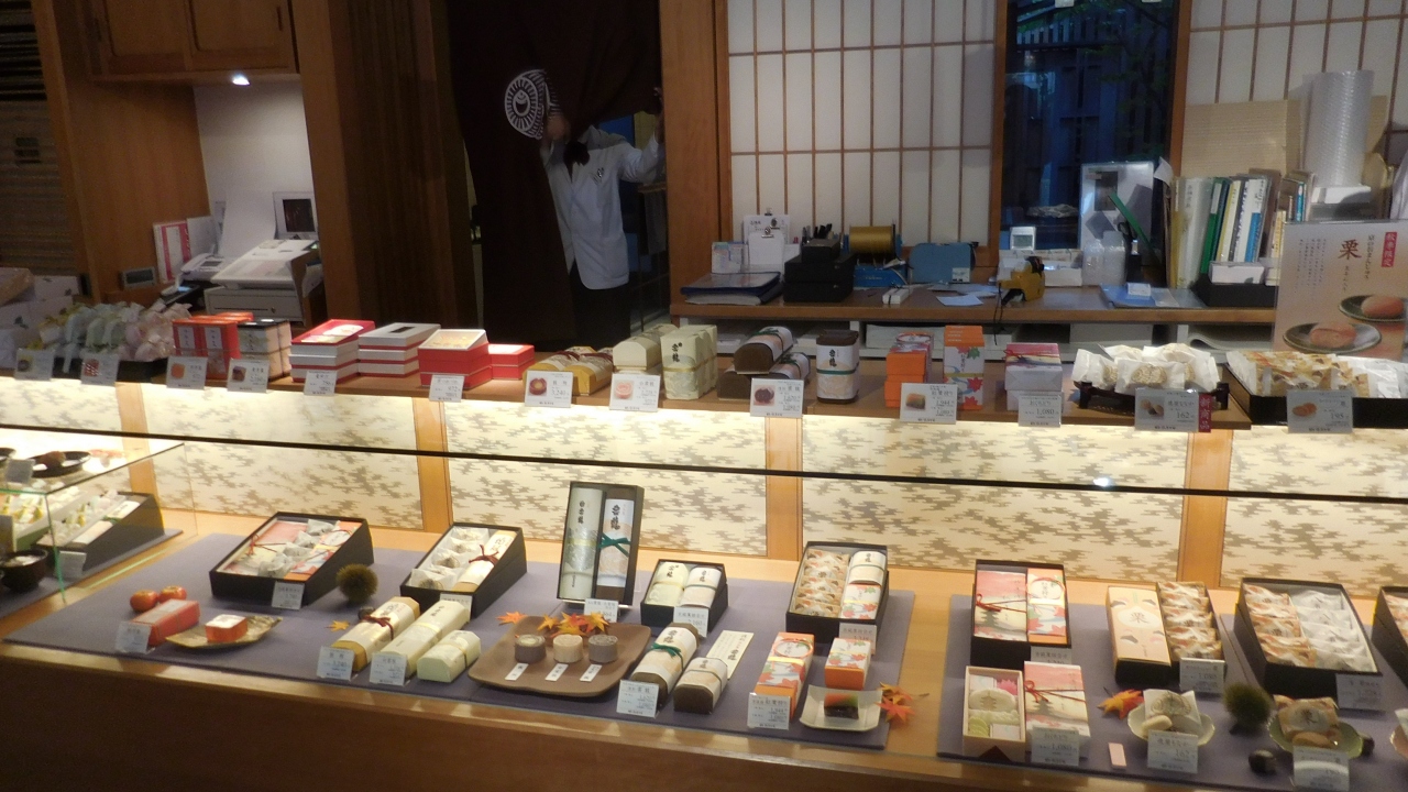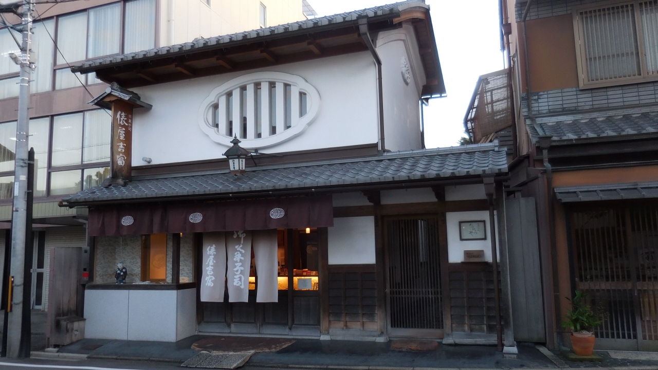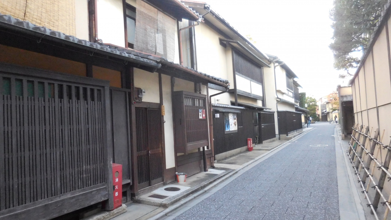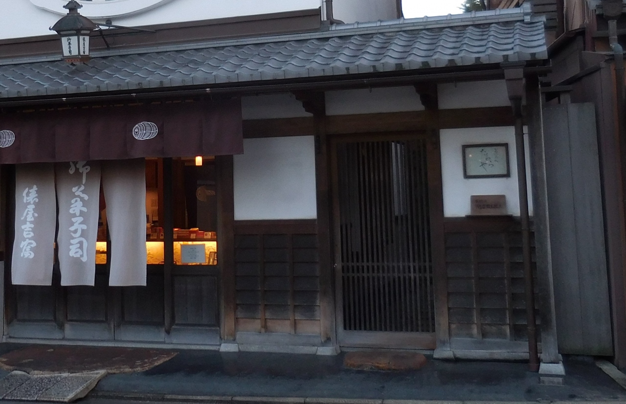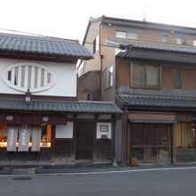 店舗のある百々町は、表千家、裏千家の家元が住む茶道文化の中心で、街並みはとても風情がある。本店のある室町通りから小川通り、寺之内通りと歩いてきて、俵屋吉富 小川店 の前を北に延びる小道を歩くと、表千家の不審菴や裏千家の今日庵がある。