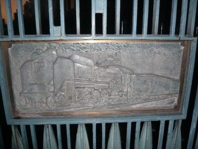 堀之内橋の親柱の傍には、JR山手線に架かる跨線橋の関係もあり、蒸気機関車や電気機関車、電車等の鉄製の絵がかけられています。
