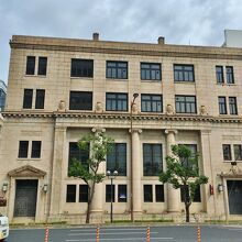 海岸通沿いにあり、東に隣接する神港ビルヂングと同様に近代化産業遺産の1つです。ロンドンに本店があるチャータード銀行の神戸支店として1938年に建設されました。入口には神殿風の円柱があり、どことなく欧州の建築を思い起こす素敵な外観です。以前あったカフェレストランは閉店し、現在は別のカフェが入っているようです。