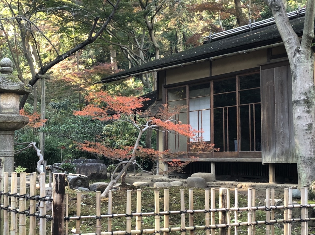三渓園の内苑の奥、谷川沿いから足を伸ばすと、聴秋閣の隣に位置する春草廬につきます。