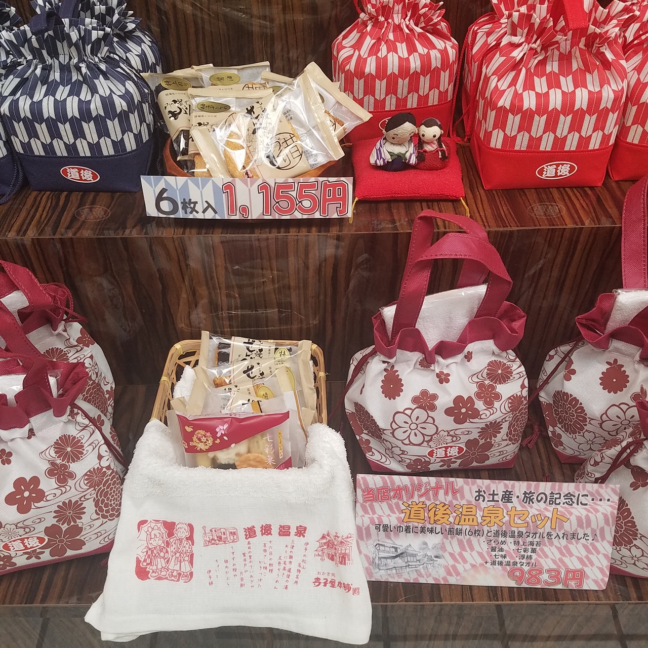 限定の道後温泉タオル入りの巾着に入ったおせんべいもありお土産にも良いですね。