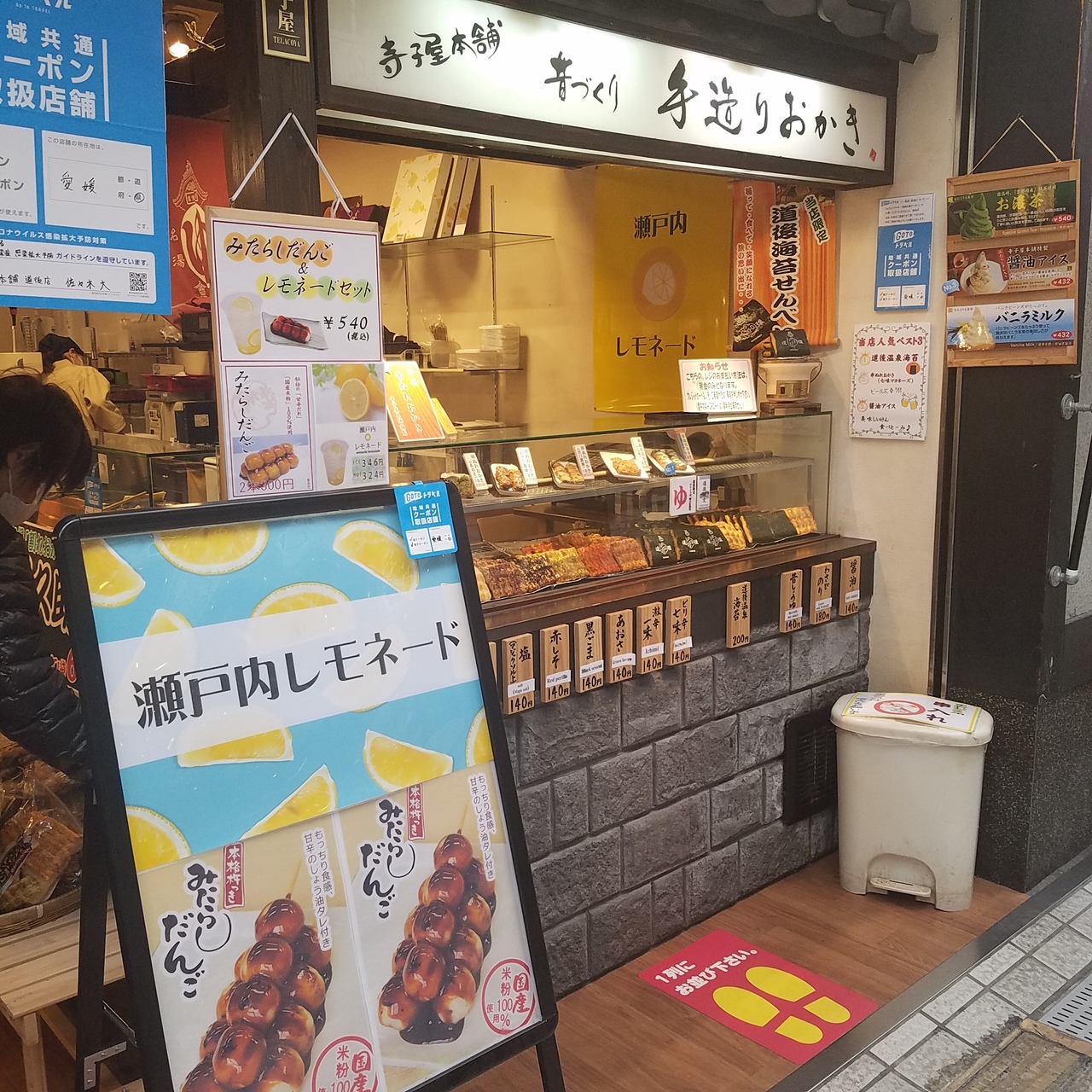 愛媛県、道後温泉にあるせんべい屋さん、寺子屋本舗です。ハイカラ商店街にあります。昔ながらの風情あるお店です。