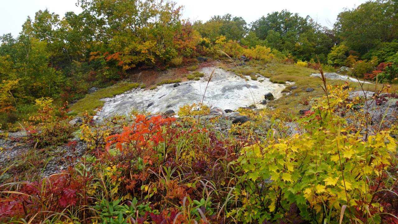 酸ヶ湯方面に少し歩くと爆裂火口跡があり、ガスが出て山肌が白くなり、地獄っぽい光景が見られます。雨の後だと結構滑るので注意が必要です。