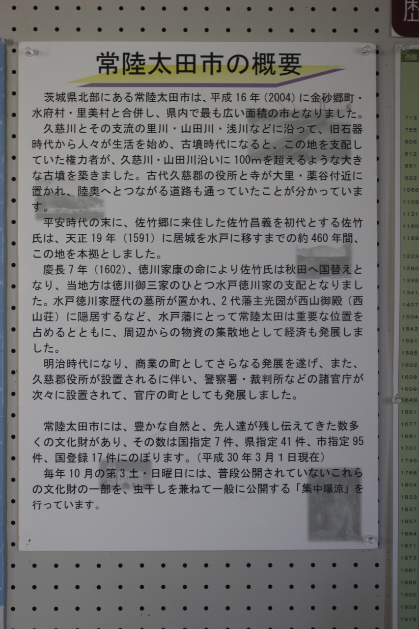 常陸太田を中心に栄えた武家の名門・佐竹氏、隠居場所とした水戸黄門等の史料も展示されているので、歴史に興味がある人なら楽しめると思います。