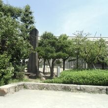 門前仲町駅1番出口から北へ約250m、深川公園内に碑があります。
