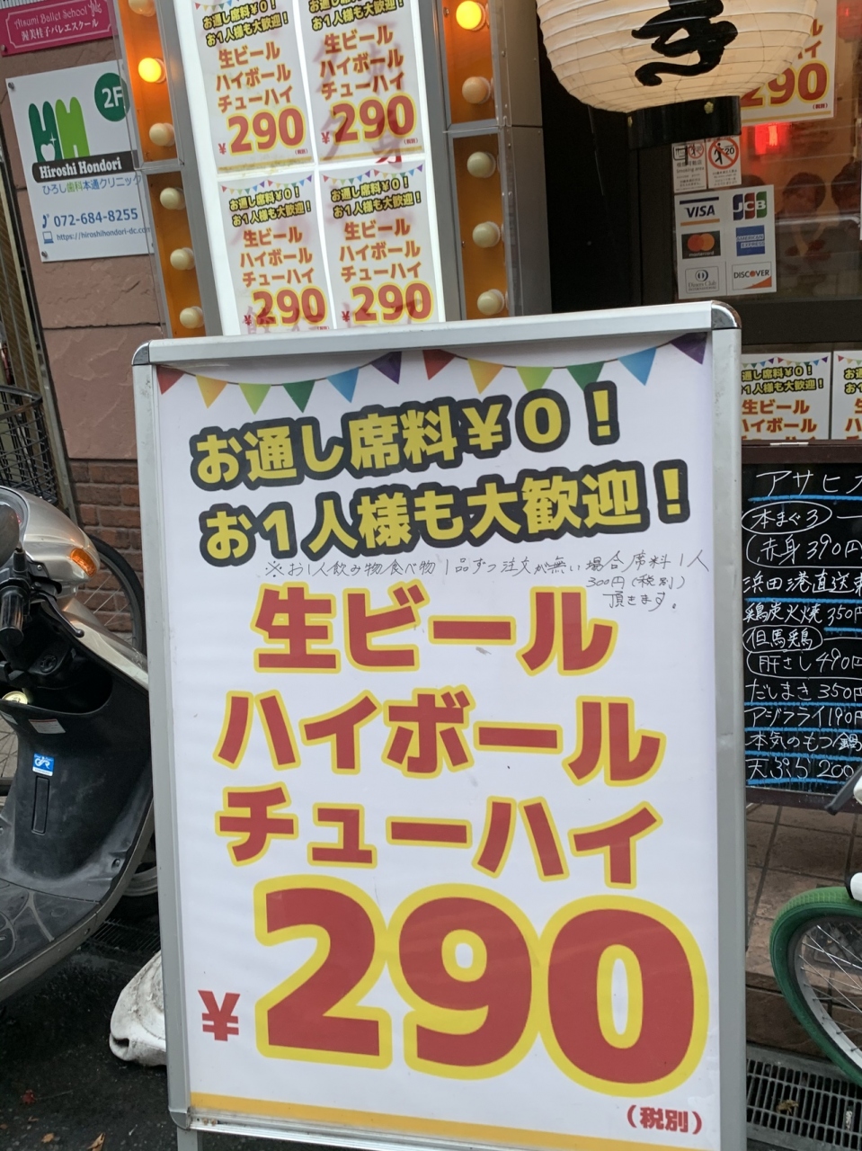 しかも 生ビール ハイボール チューハイ が ¥290 とお財布に優しいお店。