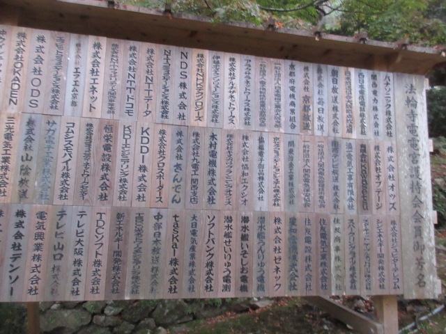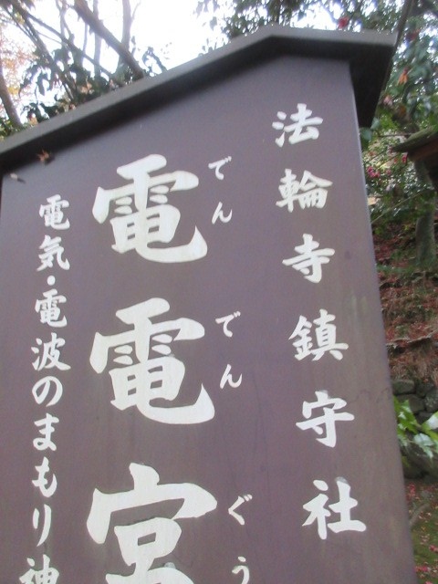 京都の嵐山にある法輪寺に参拝に行きましたが、その境内にあるお宮です。案内板はあるものの、奥まった場所なので少しわかりにくいかも。赤い鳥居が目印です。電気屋や電波の神様が祀ってあるというちょっと珍しいお宮で、そのため電気系統の会社などの名前の書いた奉納板などもあって面白いです。