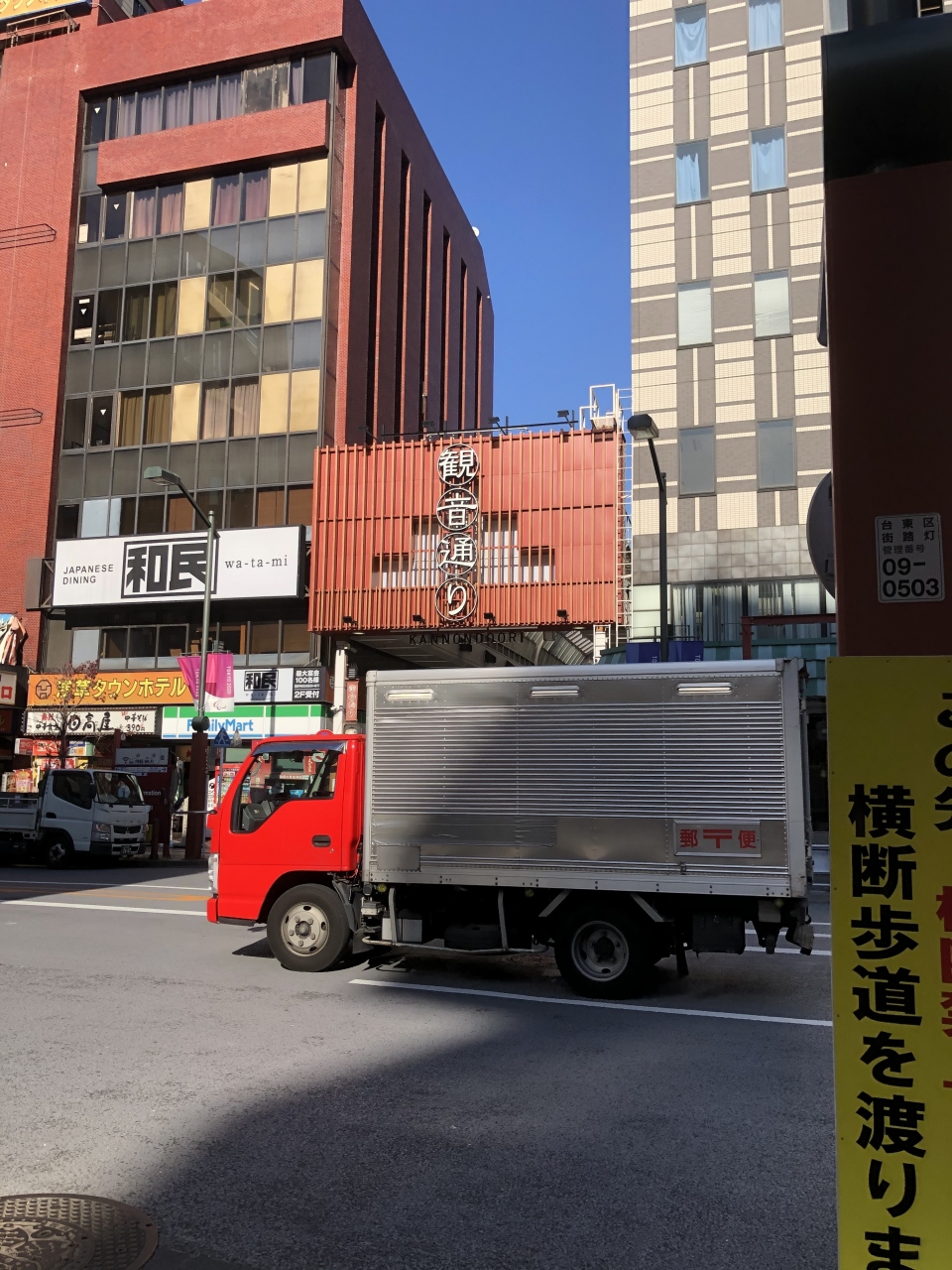 台東区・浅草寺のほど近く、仲見世通りに交差する「観音通り」商店街です。