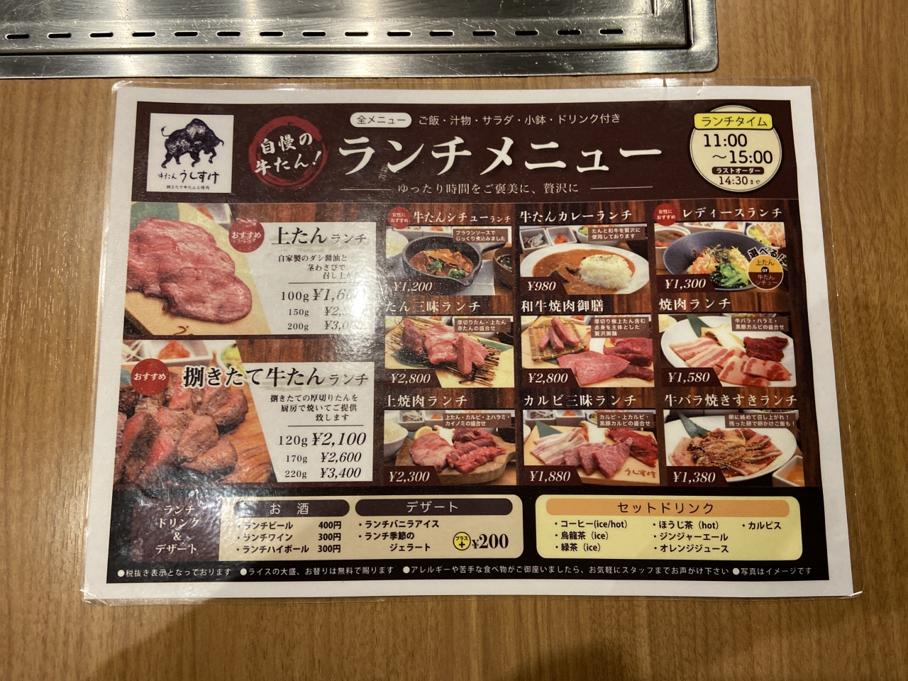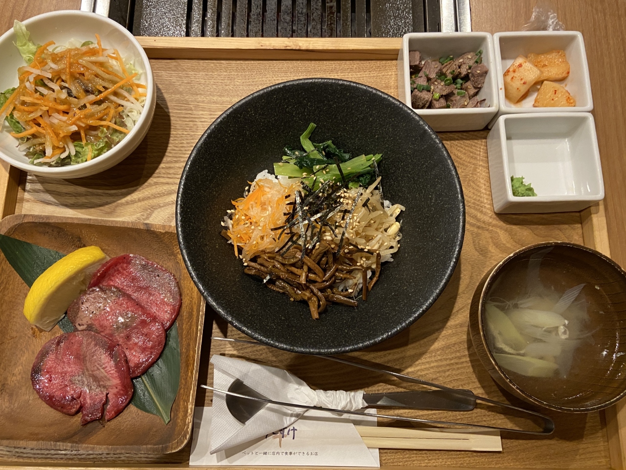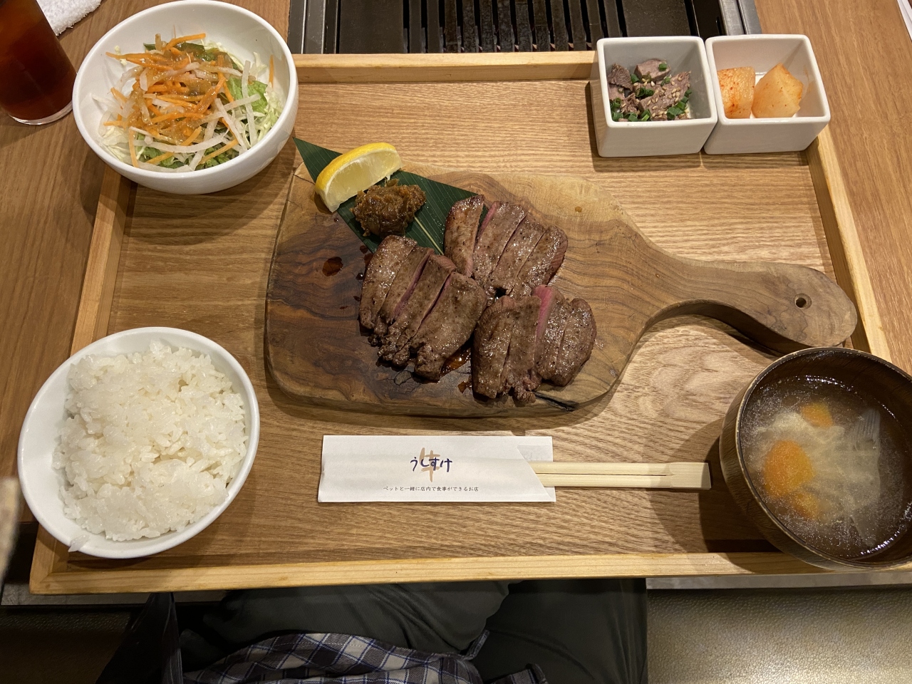 夫の捌きたて牛タンランチ(2100円)は、厚切りのタンがおいしくはあったけれど自分で焼くわけではないので、食べているうちにさめてしまうのが残念でした。