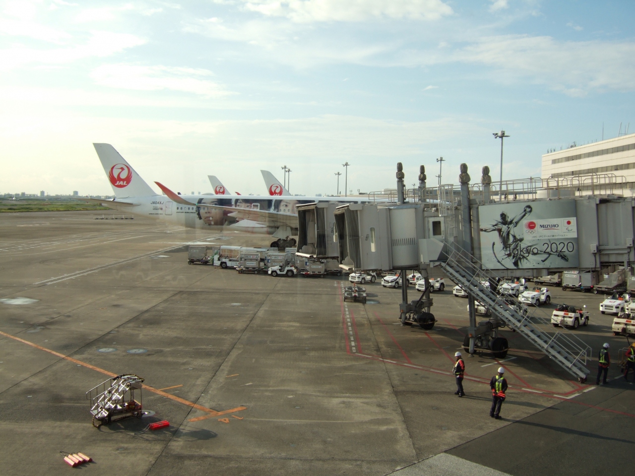 羽田空港国内線で、主にJALが利用するターミナル。細長い作りで、南ウイングから北ウイングまで、かなりの距離があります。那覇から到着し、千歳行きに乗り継ぎましたが、10番に到着して17番からの出発だったので、移動が大変でした。