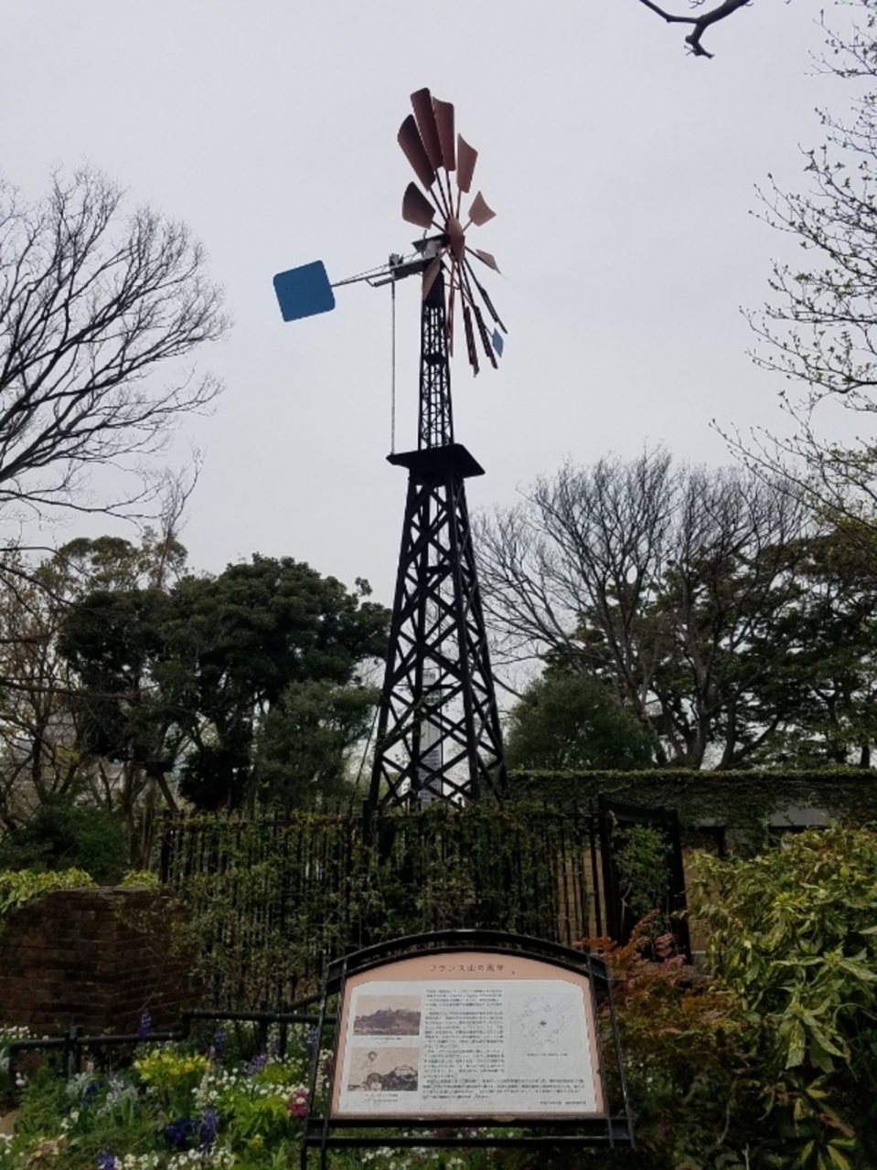 谷戸坂の横手にある山です。かつてフランス軍が駐留しフランス領事館などが置かれたのでフランス山と言うそうです。中腹にフランス領事官邸の遺構がありますが火事で焼失したそうで壁だけ残っているのが痛々しかったです。