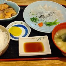 メニューがいろいろあり目移りしますが、ふく定食1200円を注文しました。