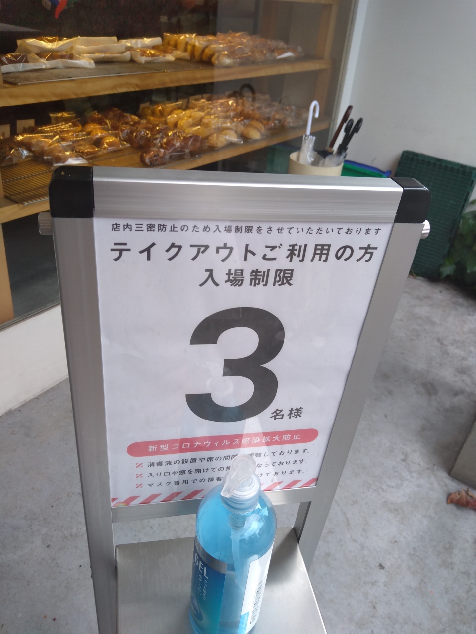 テイクアウトは店内3名の制限があります。なので外にまつことになります。ただルールが悪い方もいるので、出ようとするのに入ってこようとする人がいて、3名なんだがらでたら入るのが常識だと思います。支払いはラインペイなど電子決済もできるし、パンはすべてビニールで包装してあるし、お店のかたは工夫されています。とてもちいさな売り場です。3名しかはいれないように、家族連れとか友人連れとか大人数でなくて、一人代表で購入するぐらいのつもりで訪れてほしいです。自分も一人でいきました。ムーがやっぱりおいしい