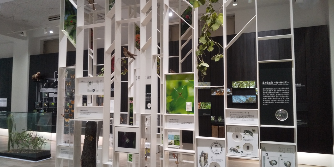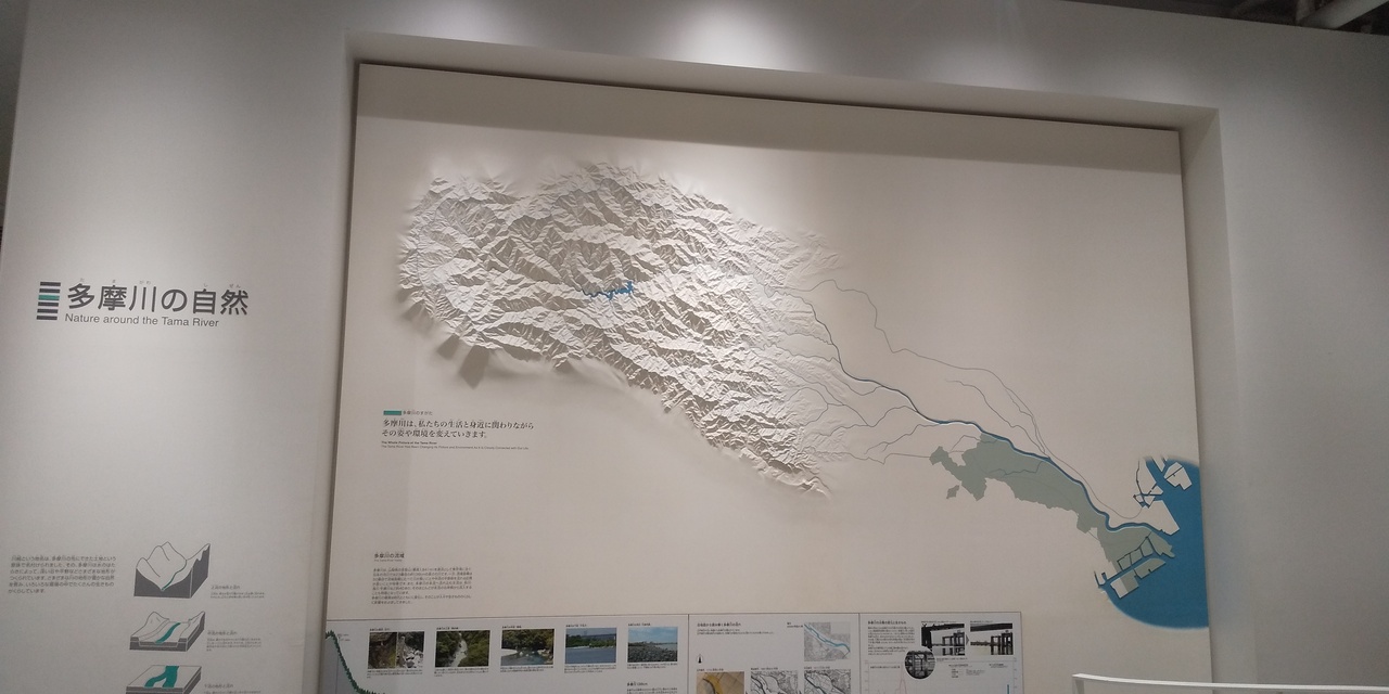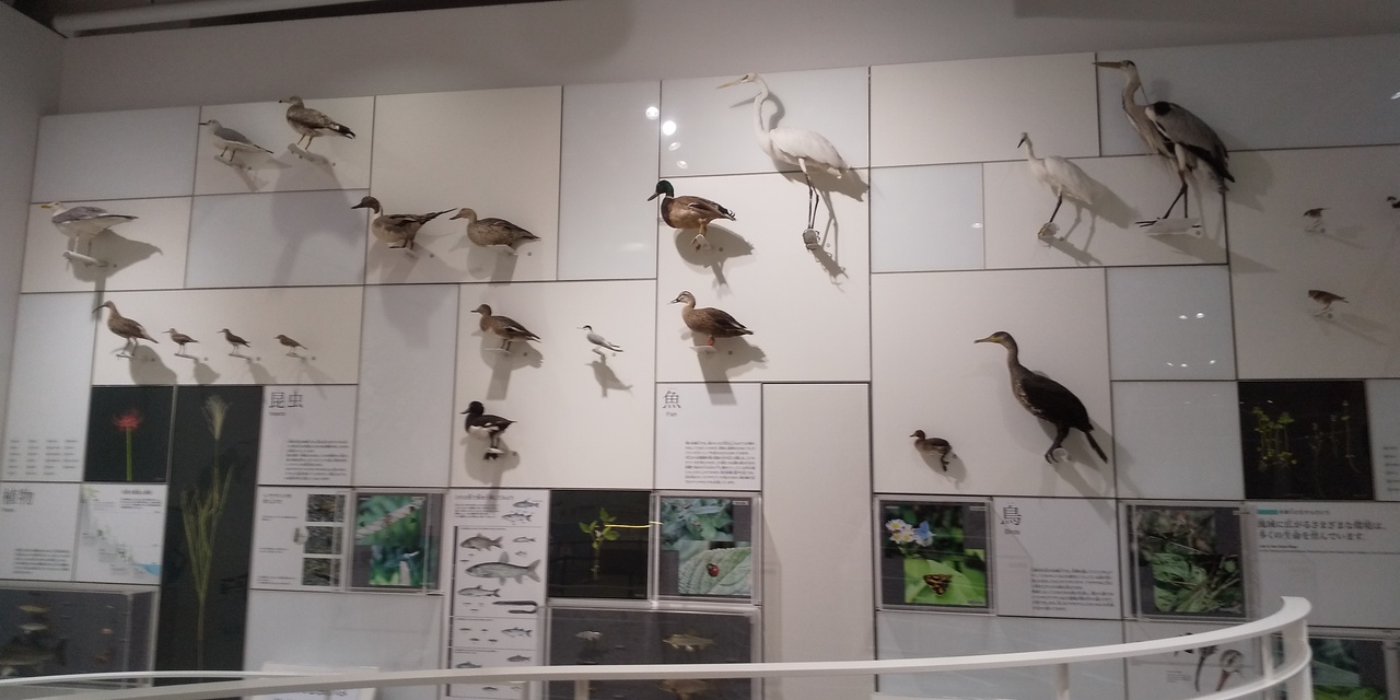館内は有料のプラネタリウムと、無料の展示室に分かれています。展示室の内容は、主に多摩川の自然、生息する動植物、川崎の大地や地層などを紹介しています。