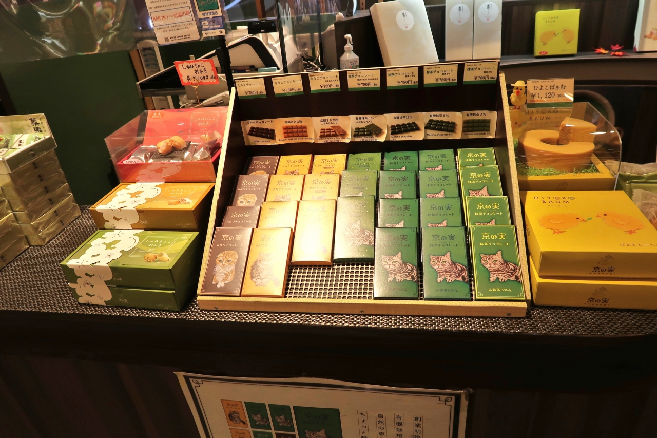京都タワーの下にある商業施設で、地下フロアがフードホール、1階に京都のお店が集められたお土産店エリアがありました。ずらし旅の特典で京都タワーサンドのお買物券をもらったので、お土産エリアを一周しました。入口にはマールブランシュ、京都製の高級石鹸の京都しゃぼんや、おしゃれな京あめクロッシェ、猫のパッケージが目をひく菓楽、きな粉キャラメルサンドも取り扱う吉祥菓寮も入っていました。