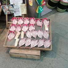 熱海駅周辺にある平和通り名店街の中にあるひもの屋です。店頭にひもの用の網に干物が干されています。特に金目鯛は、小さなものから大きなものまでサイズが色々あり、安いもの(小さい)は600円からと、リーズナブルな価格で販売されており、一度覗いて見ては。